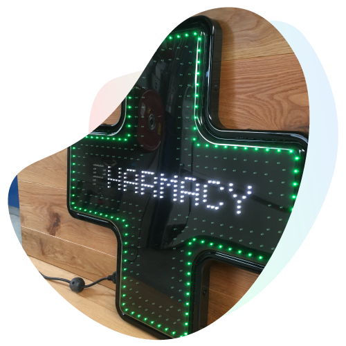 Het full colour apothekerskruis is het meest geavanceerde reclamemedium. Het apparaat kan tekst, geavanceerde 3D-graphics in 16 miljoen kleuren en zelfs video weergeven. Met het full colour animatiebereik kun je het uiterlijk van het apparaat aanpassen aan het unieke karakter van jouw apotheek.